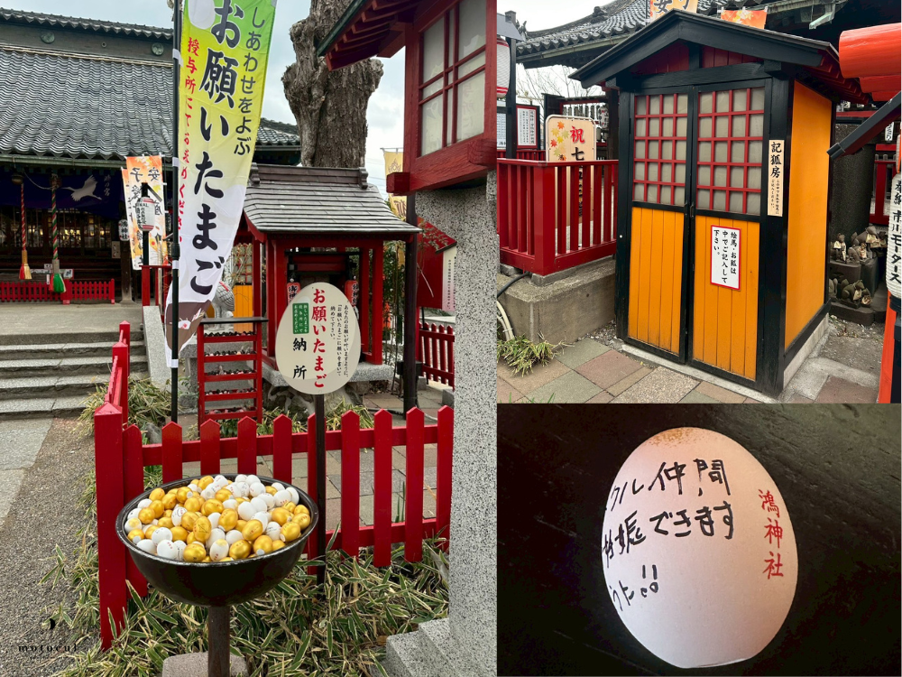 こちらの子宝神社の境内には小さい鳥居があり、願いを込めながら、同じ方向から3回くぐると願いが叶うと言われています。